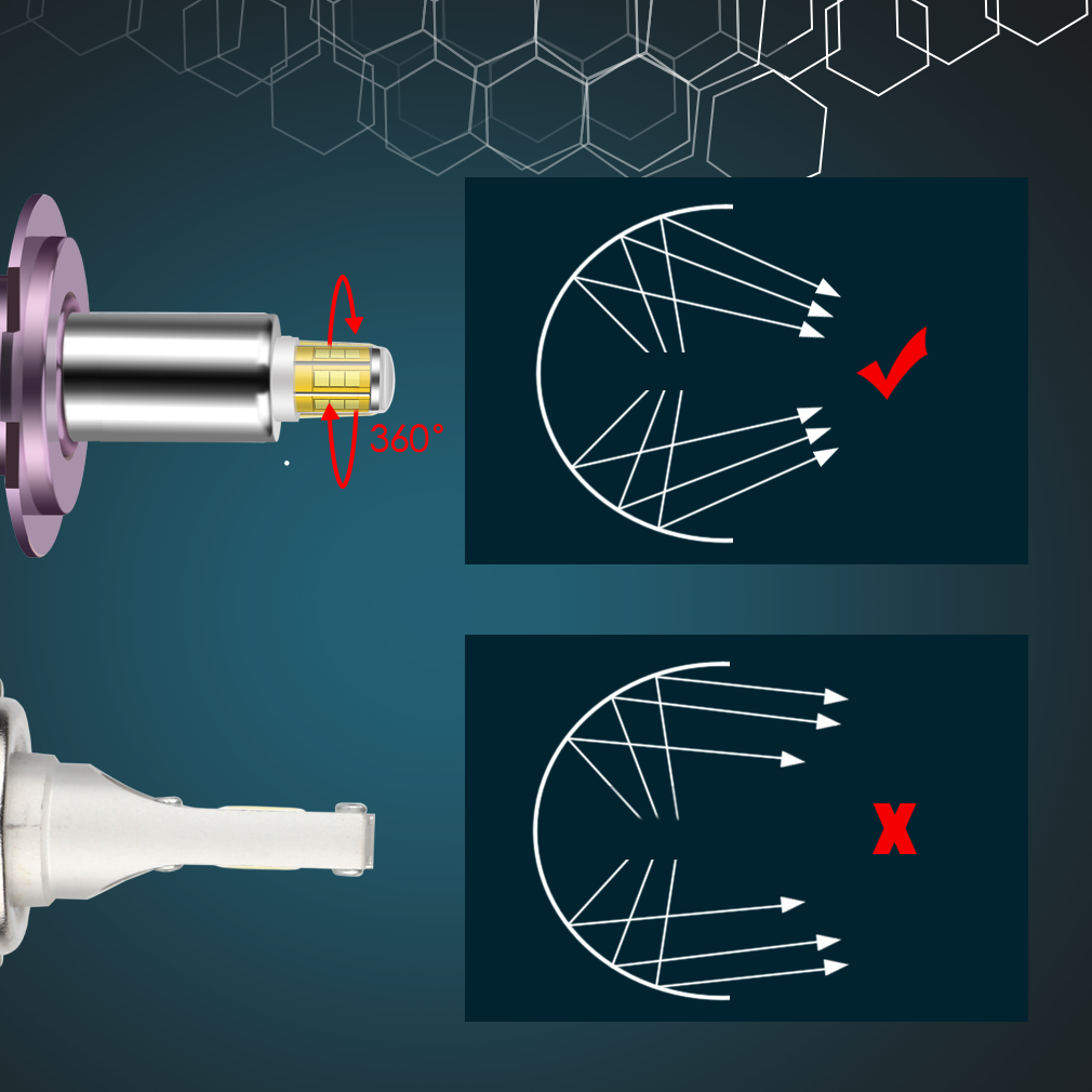 ✔️ Technologia 360° – perfekcyjna wiązka i zero ciemnych plam