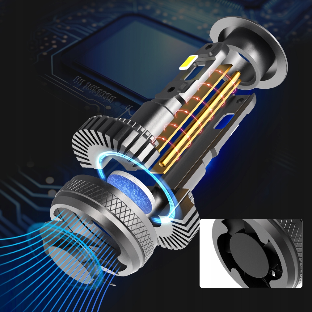 Sekretem stabilności Xstorm® LED R45 jest Xstorm® Double CoolingTube. To zaawansowana architektura oparta na PODWÓJNYM miedzianym rdzeniu. Dwie rurki cieplne (Heat Pipe) pracują równolegle, natychmiastowo odprowadzając ciepło z diod na aluminiowy korpus. Aktywny, cichy wentylator (12 000 obr./min) gwarantuje stałą wydajność.